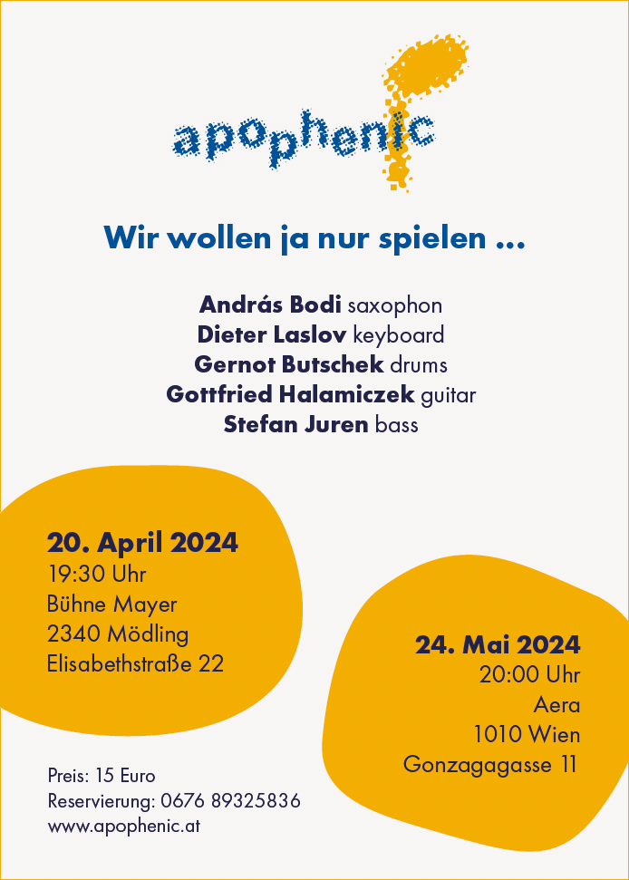 20.04.2024 Bühne Mayer 19:30 / 24.05.2024 Aera Wien 20:00
